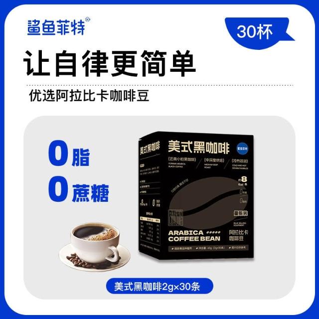 熱賣中 鯊魚菲特黑咖啡0脂肪0蔗糖60g速溶美式小粒咖啡粉醇香量販裝
