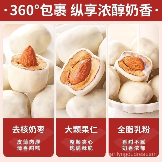 網紅巴旦木奶棗夾心零食整箱紅棗奶酪香新疆特産美食休閒食品小喫