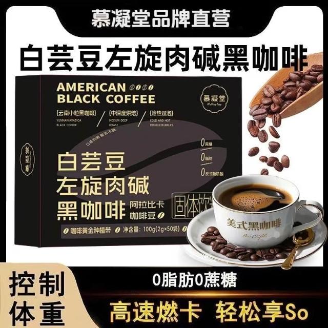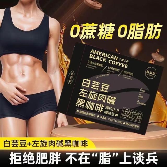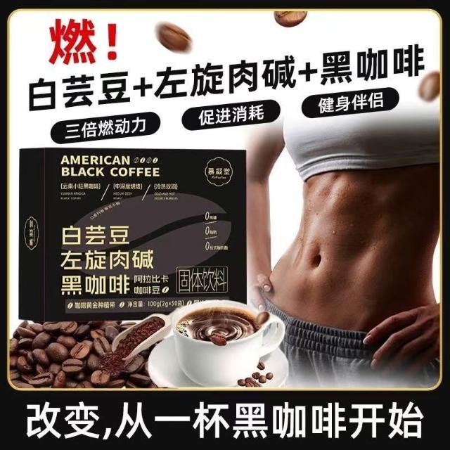 白芸豆左肉黑咖啡0脂0蔗糖速溶純黑咖啡健身代餐提神醒腦