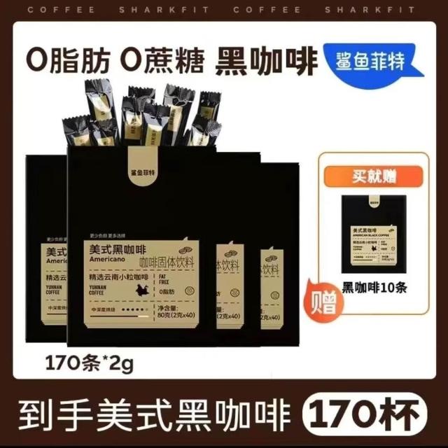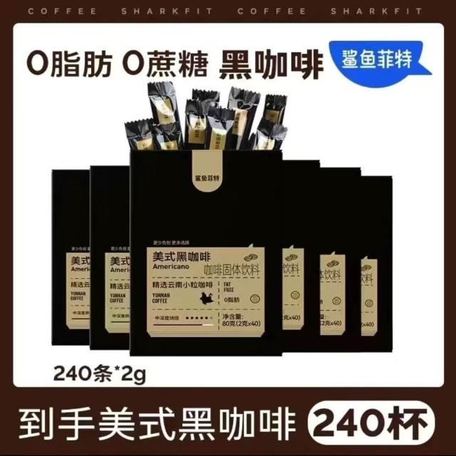 嚴選鯊魚菲特0脂黑咖啡速溶冷熱雙泡雲南咖啡美式小粒醇香蛋白質量