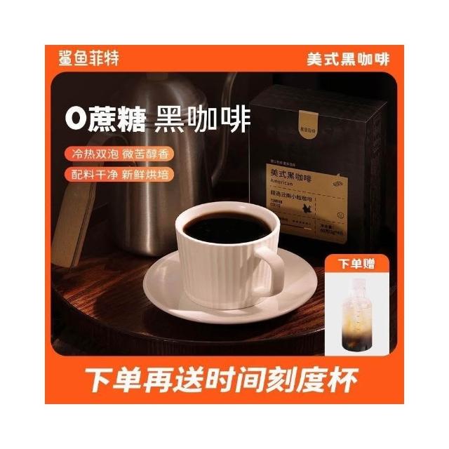 嚴選鯊魚菲特0脂黑咖啡速溶冷熱雙泡雲南咖啡美式小粒醇香蛋白質量