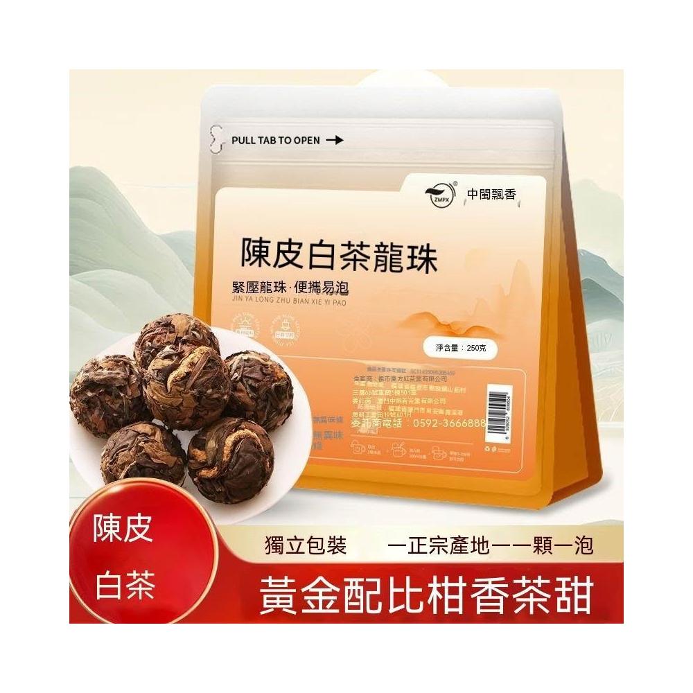 文文優選陳皮白茶龍珠福鼎老白茶廣東陳皮茶緊壓茶葉獨立小包裝醇厚棗香