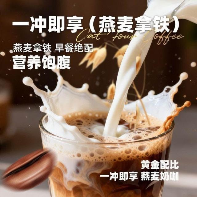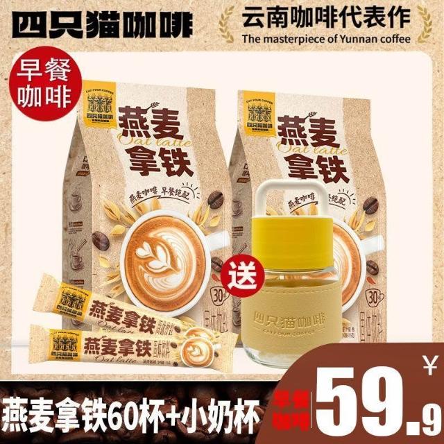 文文優選燕麥拿鐵咖啡30條 四隻貓 三合一 速溶咖啡粉 學生 上班熬夜450g