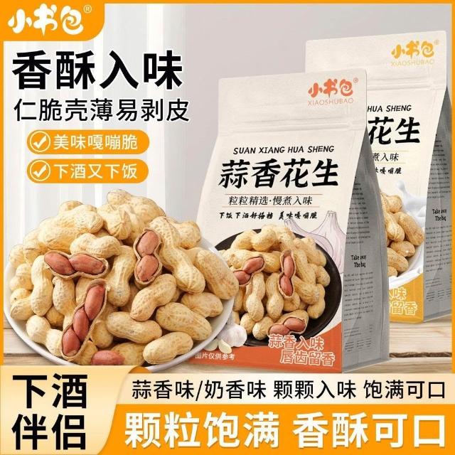 文文優選小書包蒜香奶香花生400g袋裝奶香抄熟下酒菜堅果帶殼花生零食
