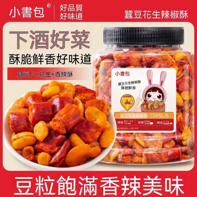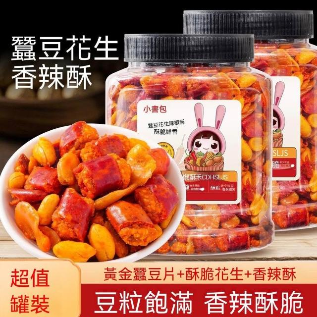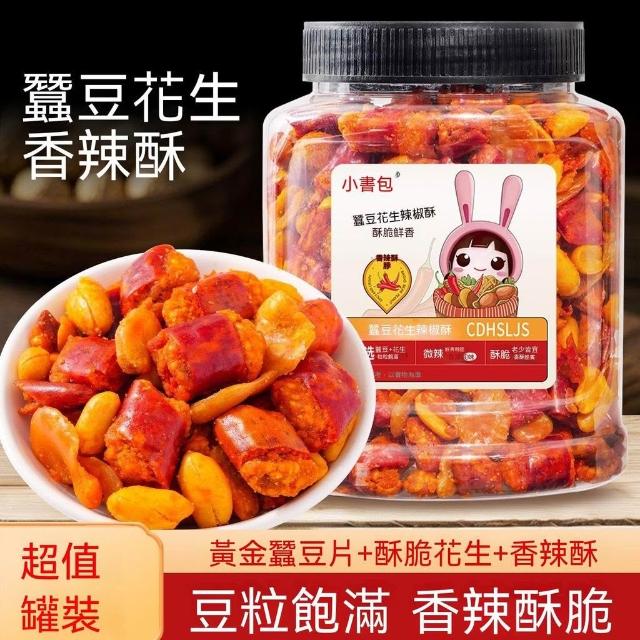 文文優選小書包蠶豆花生香辣酥512g罐裝下酒菜辣椒香脆休閒零食小吃