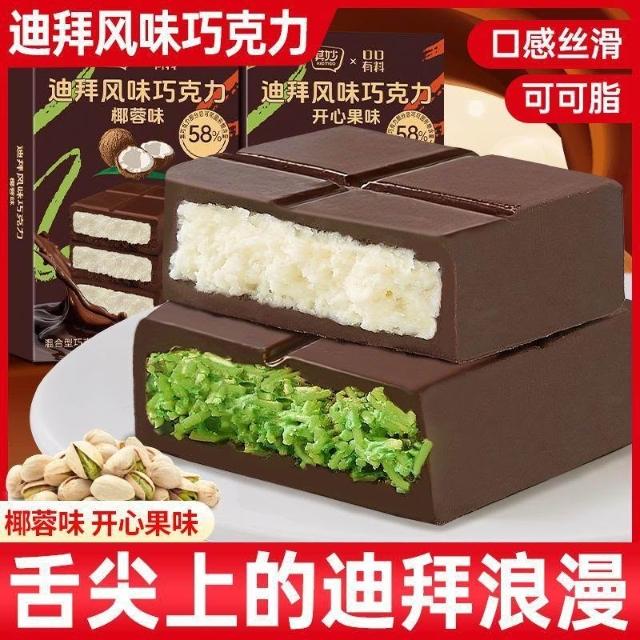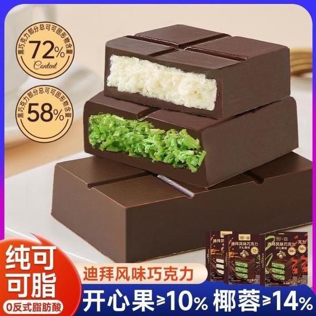 文文優選純可可脂迪拜風味夾心巧克力開心果醬味黑巧克力板磚休閒網紅零食
