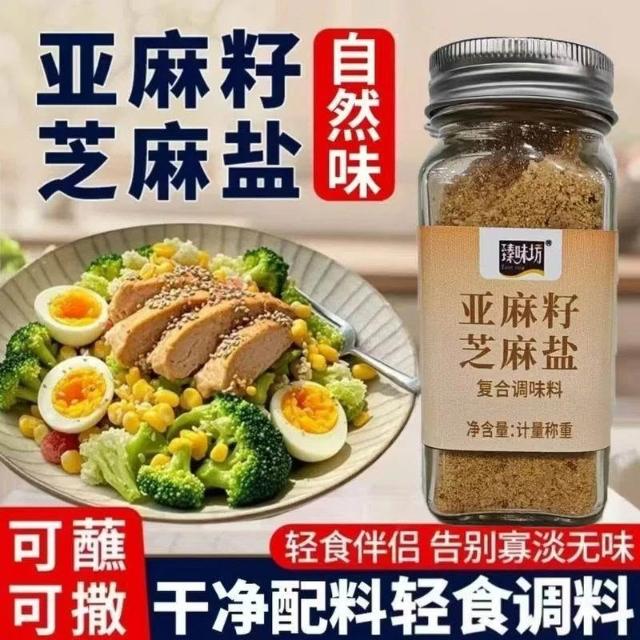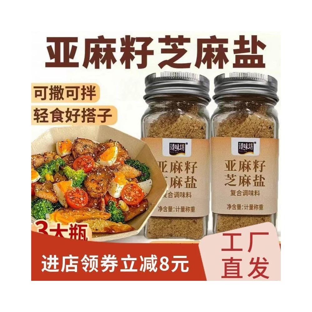 文文優選亞麻籽芝麻鹽即食鹹味五香芝麻粉調料餐飲家用火鍋蘸料到手3瓶