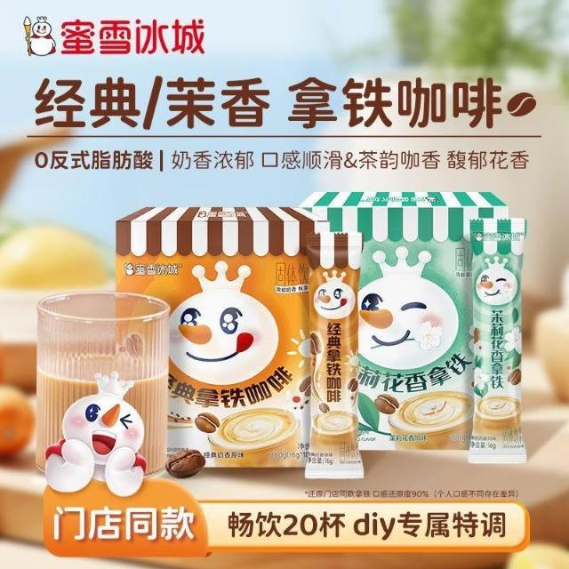 文文優選3盒蜜雪冰城 雪王拿鐵咖啡3盒*160g速溶獨立包裝奶香衝飲焦糖堅果