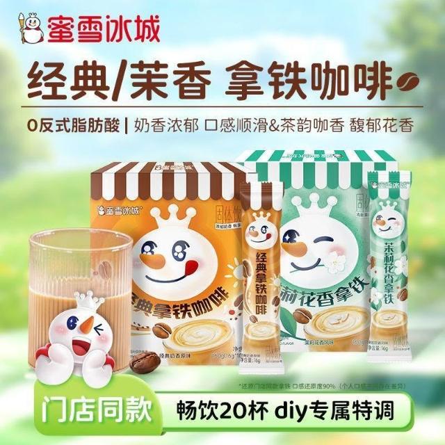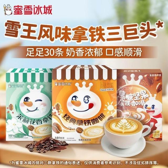文文優選3盒蜜雪冰城 雪王拿鐵咖啡3盒*160g速溶獨立包裝奶香衝飲焦糖堅果
