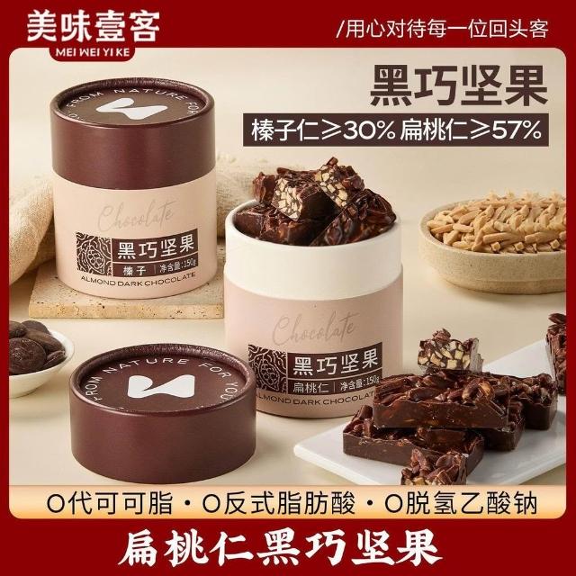 贝贝優選美味壹客黑巧堅果夾心巧克力150g罐榛子扁桃仁巧克力辦公室分享裝