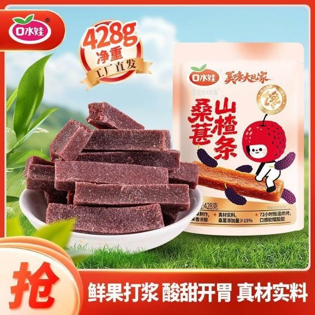 贝贝優選口水娃桑葚添加量15%桑葚山楂條428g*1酸甜果脯蜜餞果乾山楂零食
