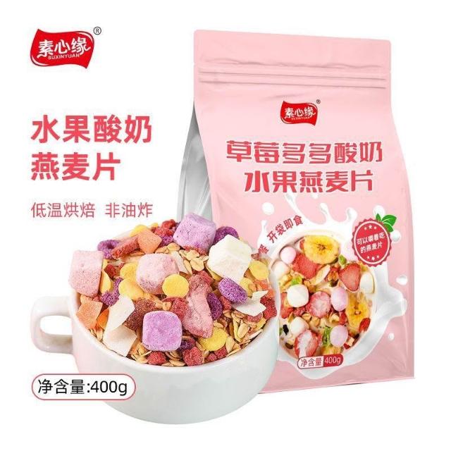 贝贝優選草莓酸奶水果混合麥片早餐果粒學生燕麥片即食烘焙麥片