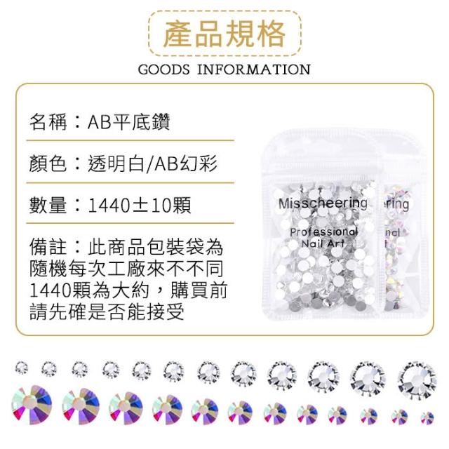 美甲鑽飾 平底白鑽 AB幻彩平底鑽 1440顆水鑽 水晶澳鑽 美甲 美甲材料 美甲飾品NailsMall