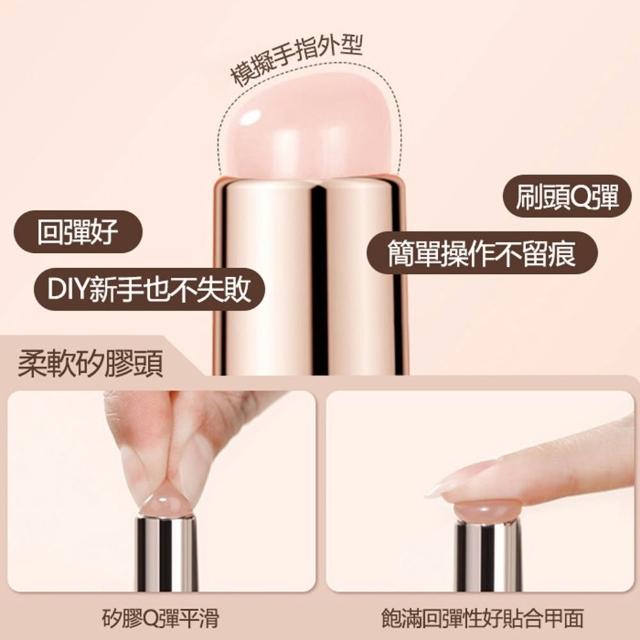- 筆刷為飽滿Q彈坡形矽膠頭貼合甲