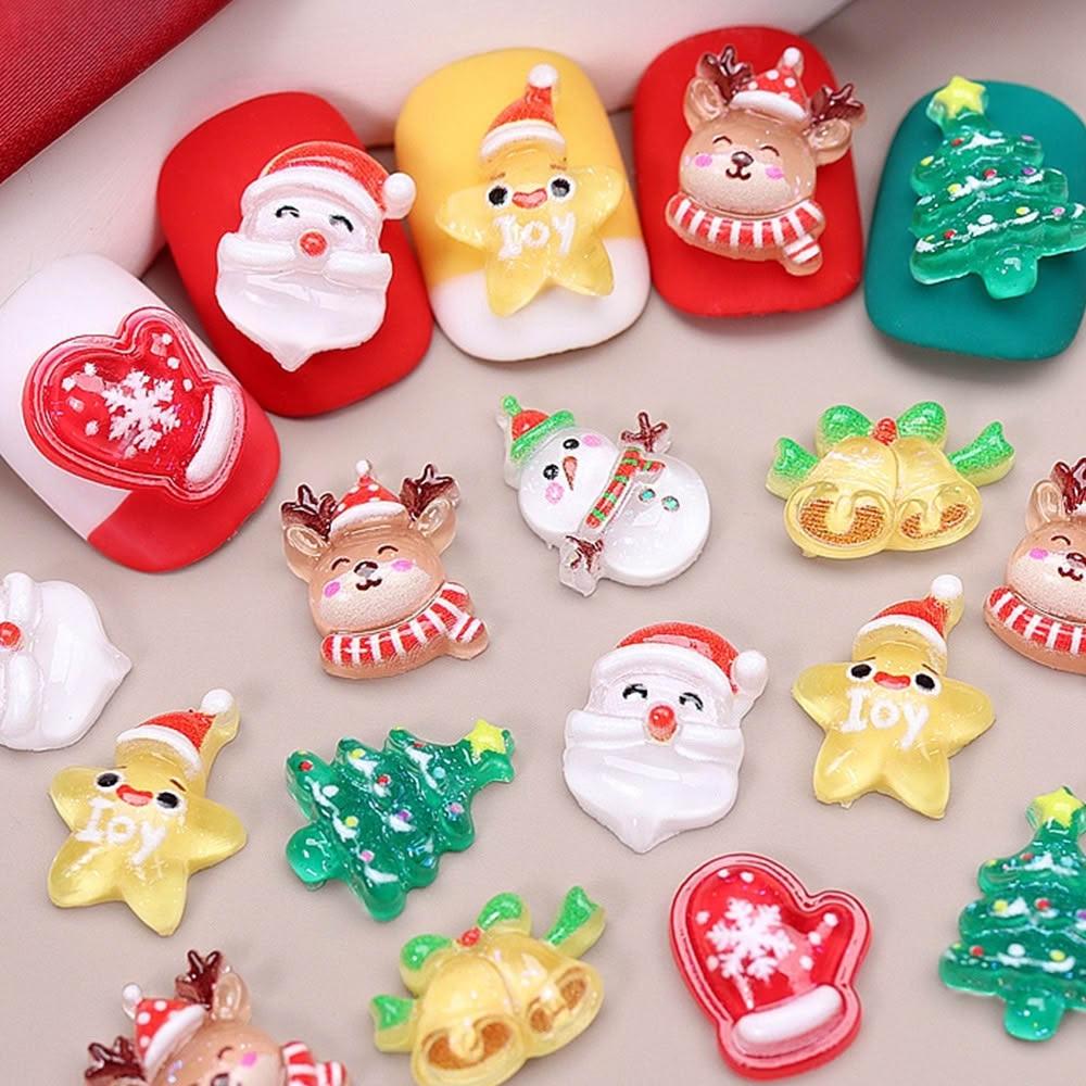 美甲 耶誕節美甲飾品 可愛麋鹿雪人聖誕鈴鐺樹脂diy指甲裝飾品樹脂立體飾品美甲材料NailsMall