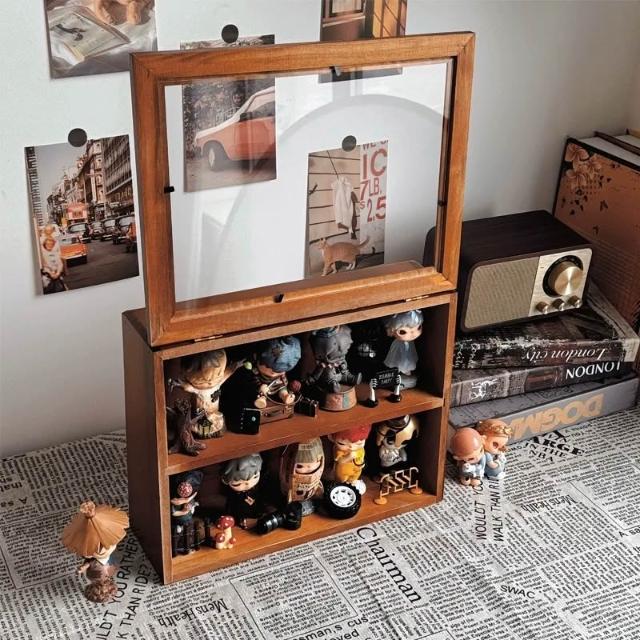 公仔展示櫃 實木收納櫃 桌面收納櫃 labubu展示櫃 泡泡瑪特展示盒 公仔收納櫃 11D