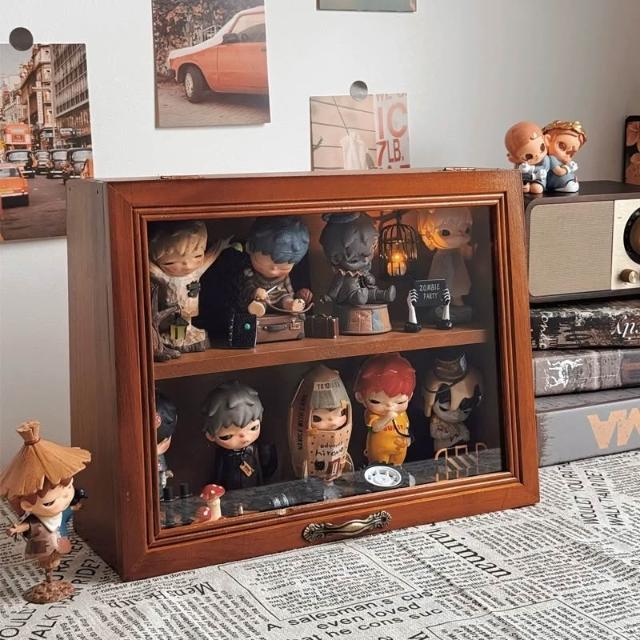 公仔展示櫃 實木收納櫃 桌面收納櫃 labubu展示櫃 泡泡瑪特展示盒 公仔收納櫃 11D