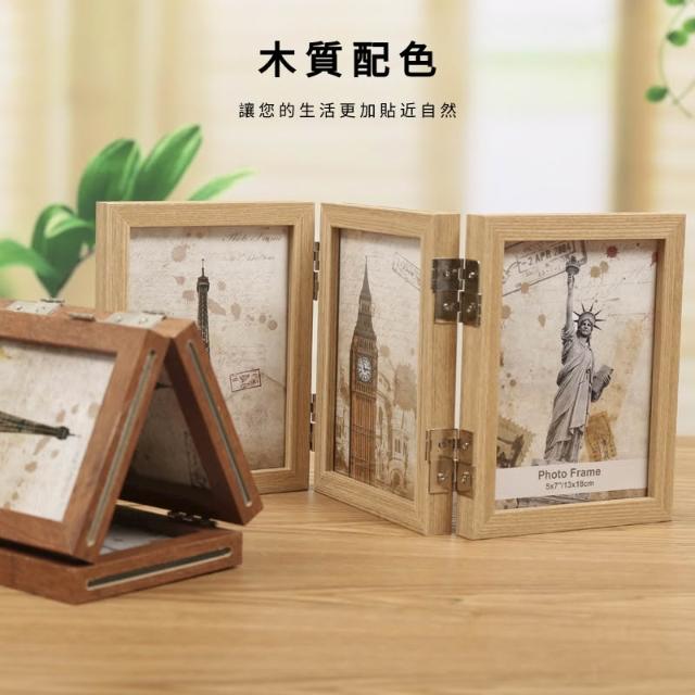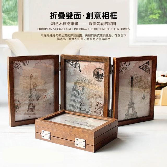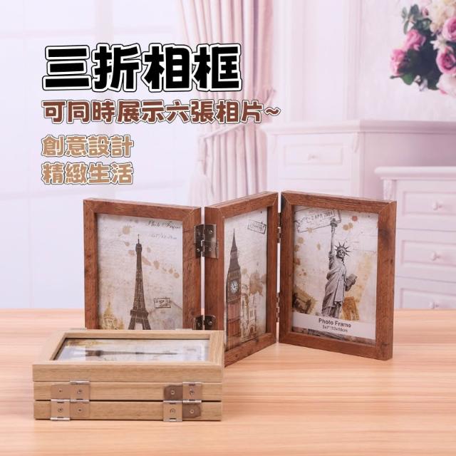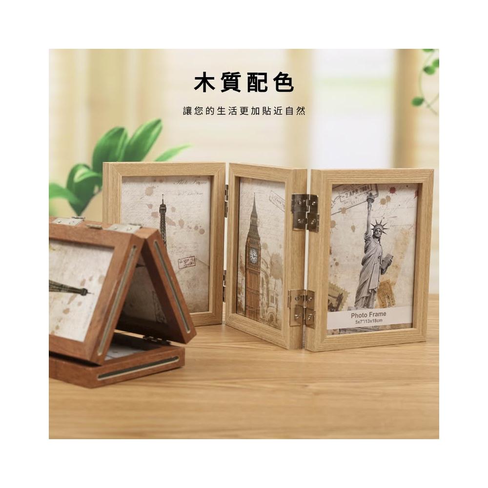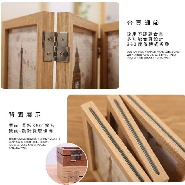 紀念相框 實木相框 三折相框 展示框 原木相框 6吋 8吋 藝術相框 摺叠相框 木質相框 7D