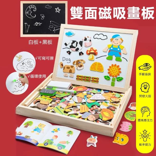 台灣出貨 雙面畫板 磁性拼拼乐画板 磁性拼圖 拼拼樂 兒童黑板 白板 磁吸貼片 35C