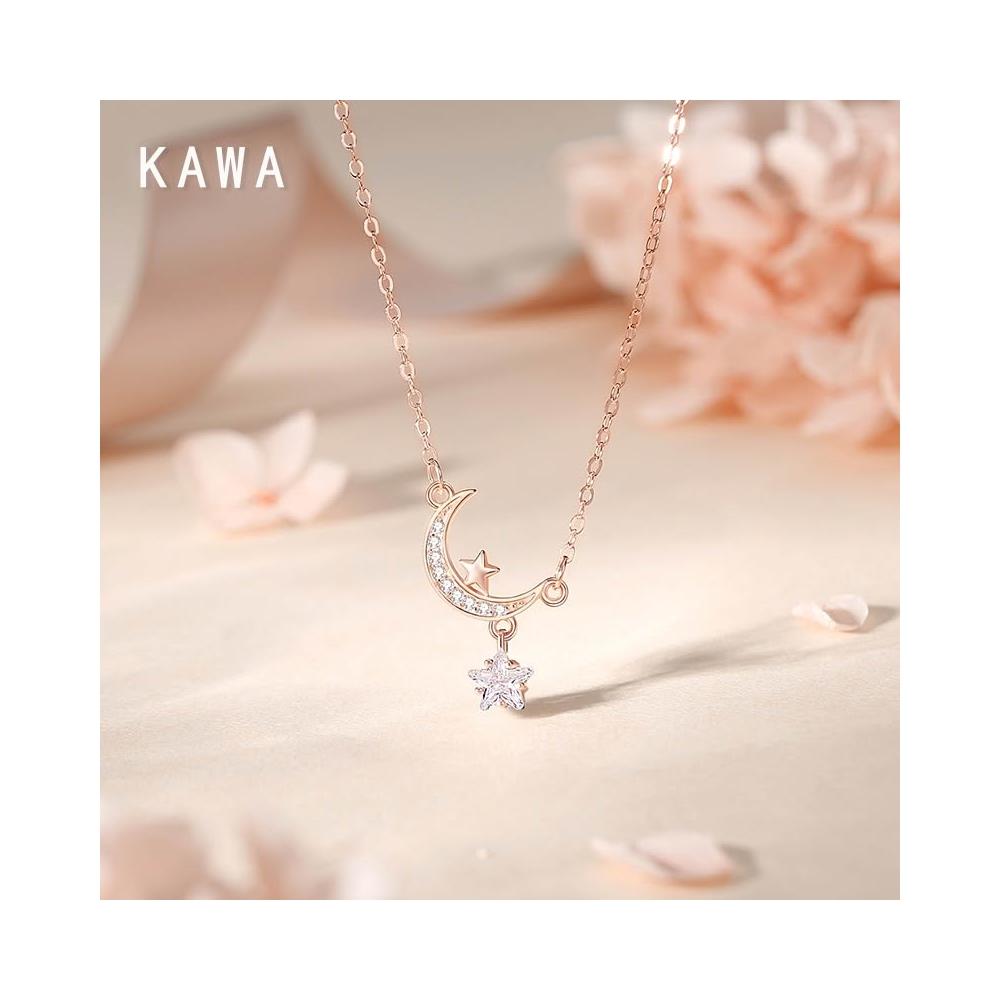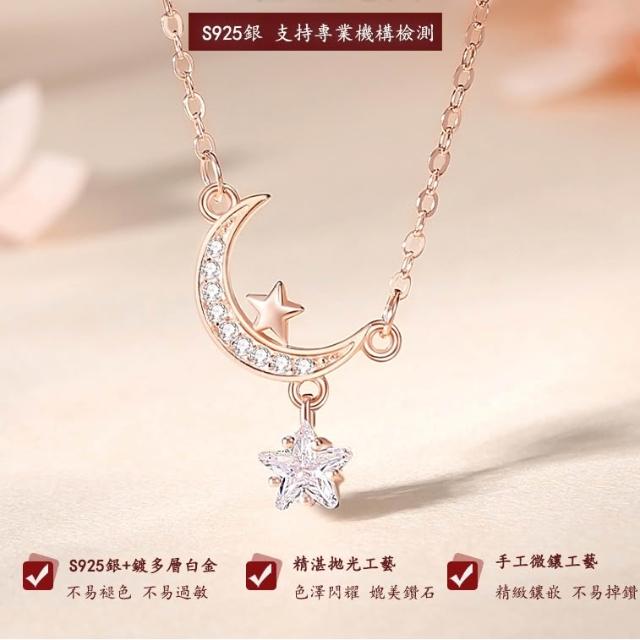 KAWA 七夕特賣 摘星攬月 S925純銀 純銀項鏈 銀鏈 項鏈 不褪色 鎖骨鍊 520禮物 37Q