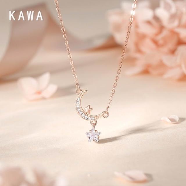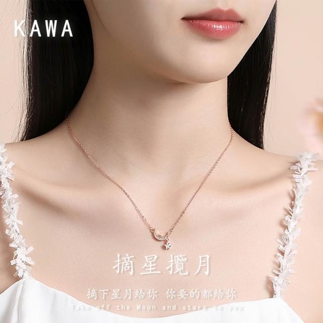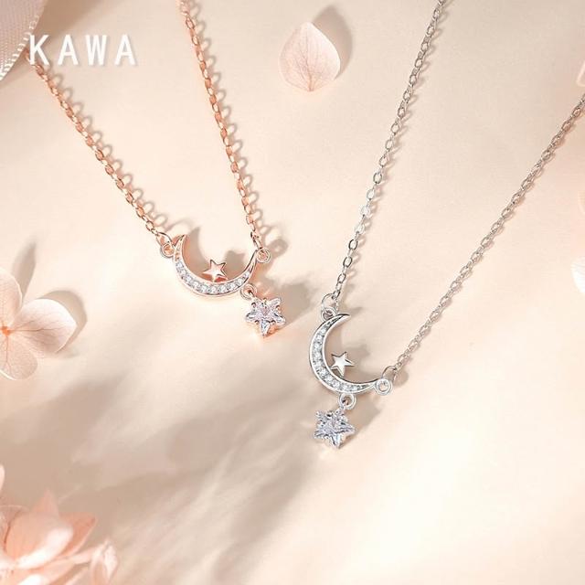 KAWA 七夕特賣 摘星攬月 S925純銀 純銀項鏈 銀鏈 項鏈 不褪色 鎖骨鍊 520禮物 37Q