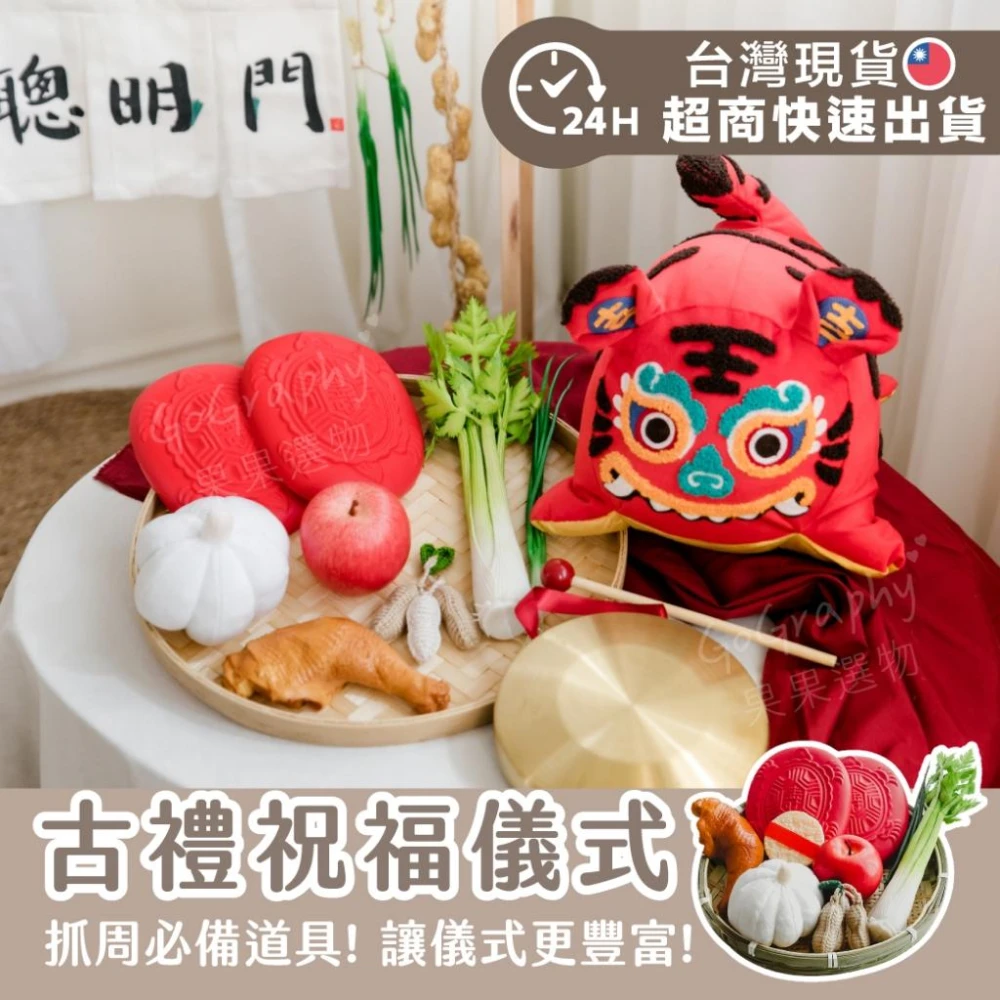 現貨 快速出貨|抓周古禮祝福儀式 抓周 古禮 抓周儀式 抓周道具 仿真蔥 花生 仿真蘋果 雞腿 |GoGraphy