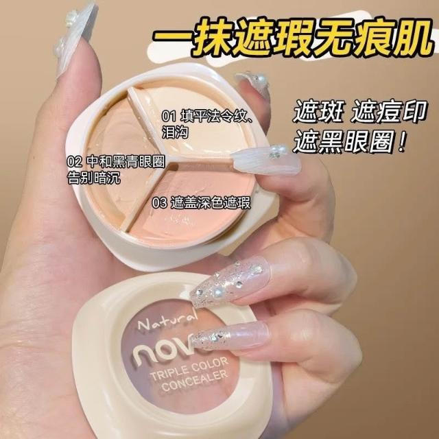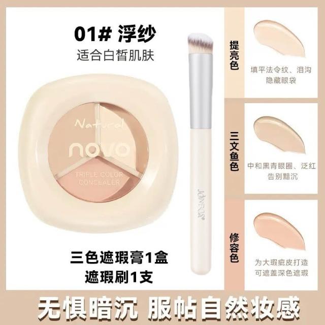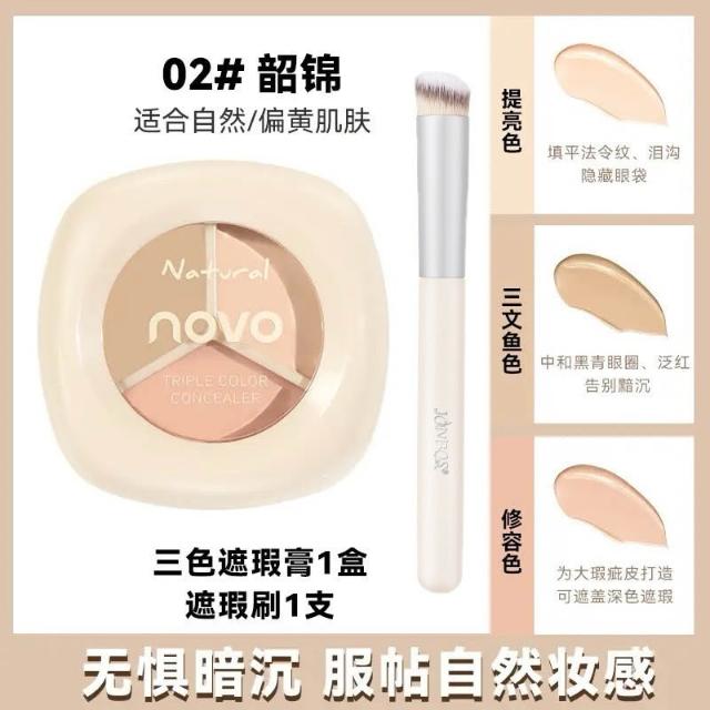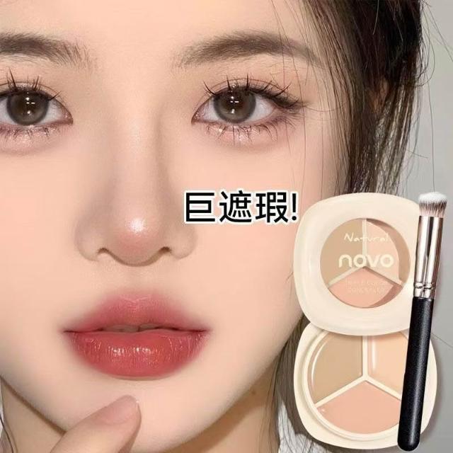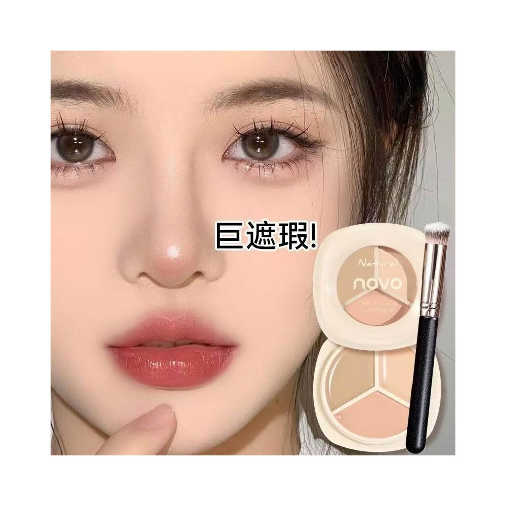 天天美妝 NOVO三色遮瑕膏 遮蓋淚溝 臉部提亮 修容遮暇男女通用 潤輕透粉底膏🖌️ 隨身刷頭 隨時補妝 持久不脫妝
