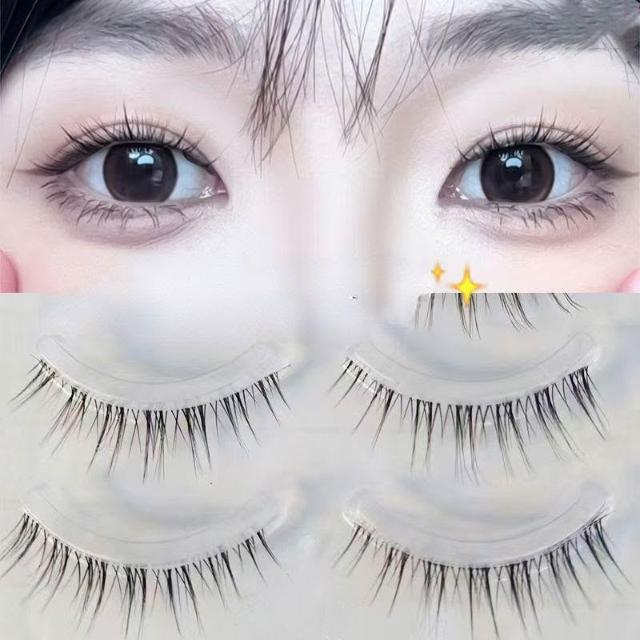 嬰兒彎~超自然透明細梗整條睫毛卷翹假睫毛新手