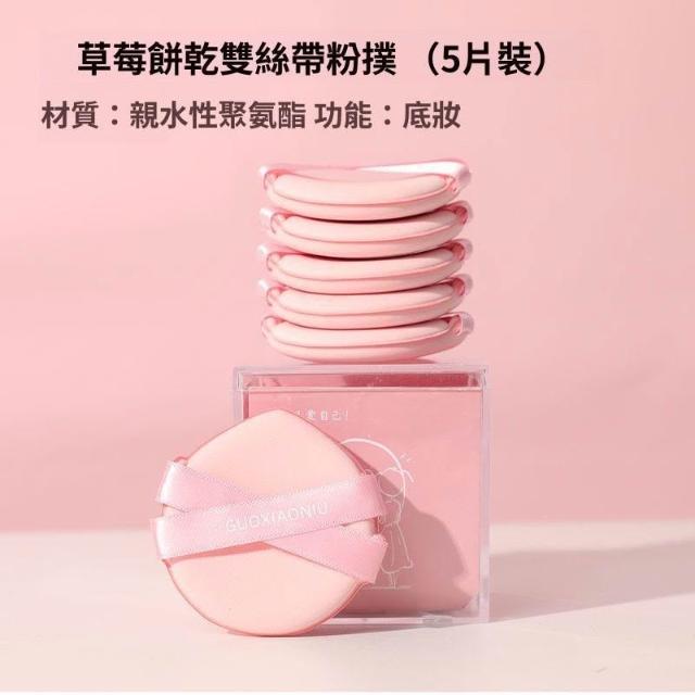 粉撲黃油草莓氣墊雙絲帶超軟乾溼兩用雙面美妝蛋正品