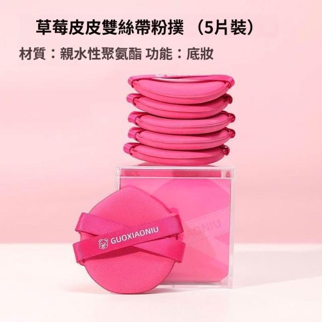 粉撲黃油草莓氣墊雙絲帶超軟乾溼兩用雙面美妝蛋正品