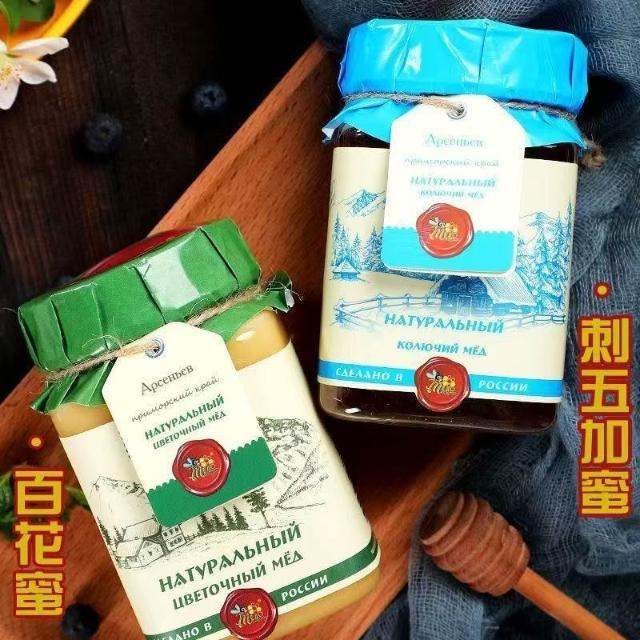 天下美食 俄羅斯原裝進口天然蜂蜜百花蜜椴樹蜜蕎麥蜜葵花蜜刺五加蜜500g瓶