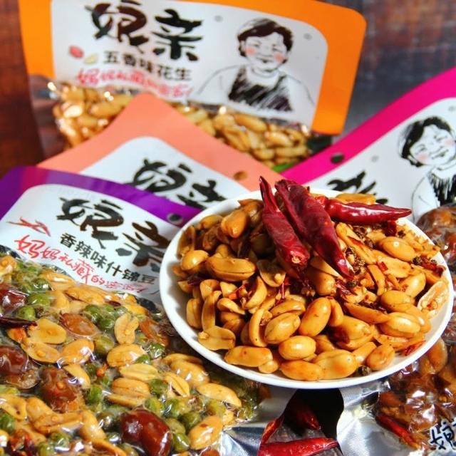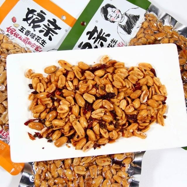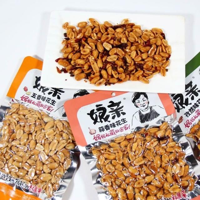 天下美食娘親 麻辣五香花生米仁脫皮熟油炸蒜香孜然味下酒菜真空包裝包郵