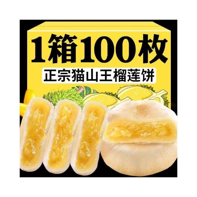 天下美食榴槤餅 爆漿 新鮮猫山王榴槤酥榴蓮餅 100個 流心榴蓮餅 休閒糕點 榴槤糕點心 夾心糕點