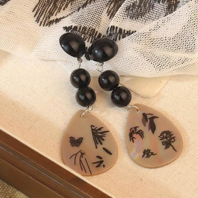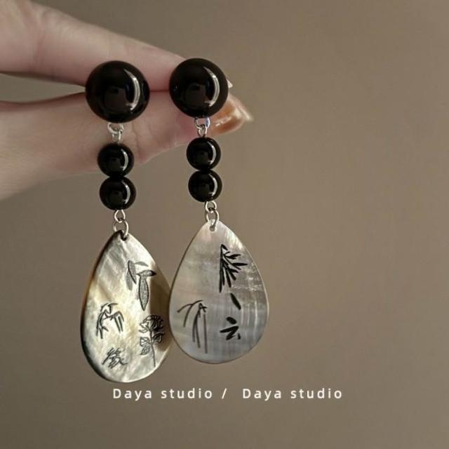 水墨風水滴耳環女小衆耳釘氣質時尚漢服配飾