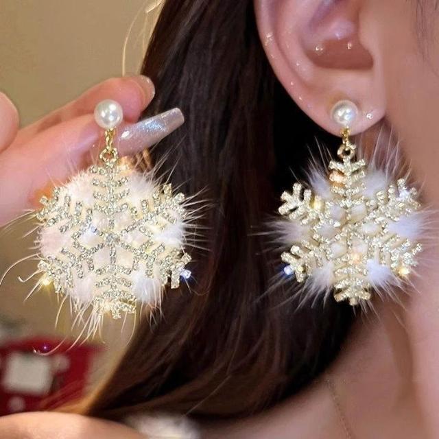 毛絨雪花耳釘女2026新款設計耳環溫特耳飾耳墜