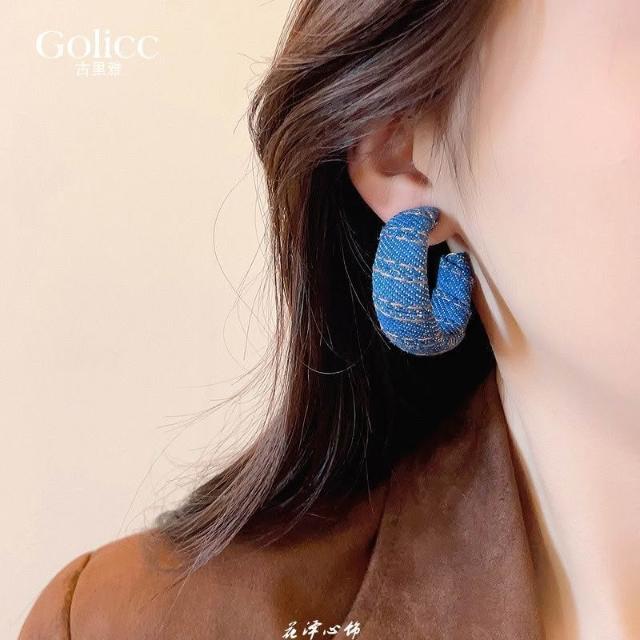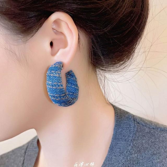 纏繞牛仔布C型耳環女2026新款耳圈百搭耳飾