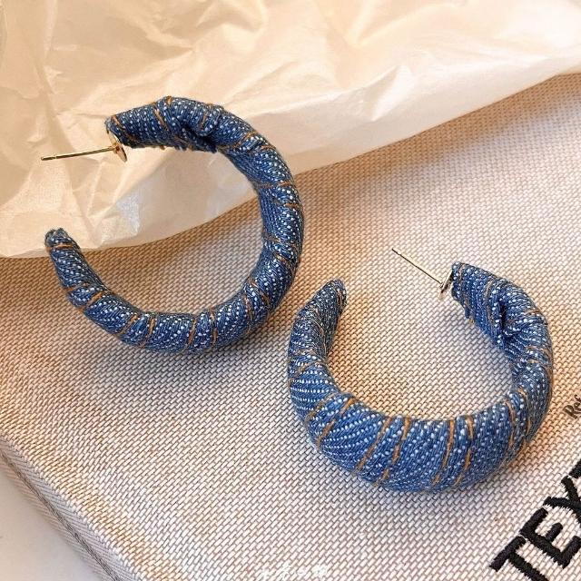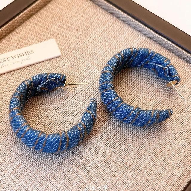 纏繞牛仔布C型耳環女2026新款耳圈百搭耳飾