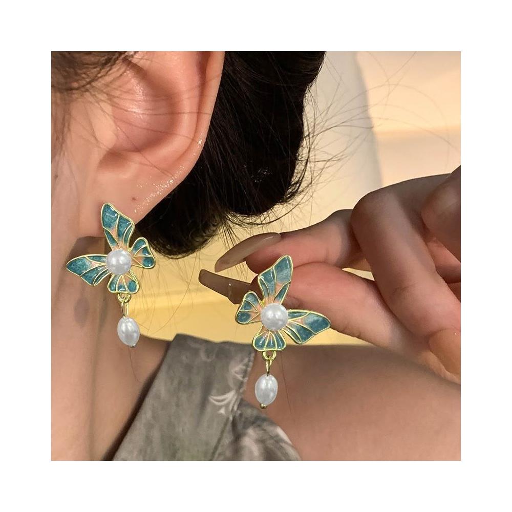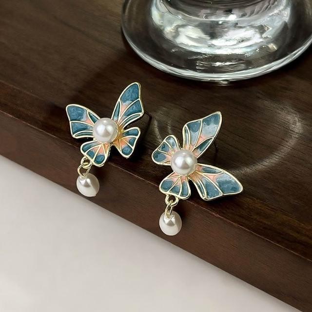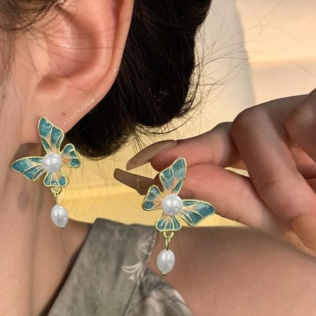 琺琅蝴蝶耳環女耳環百搭時尚耳飾