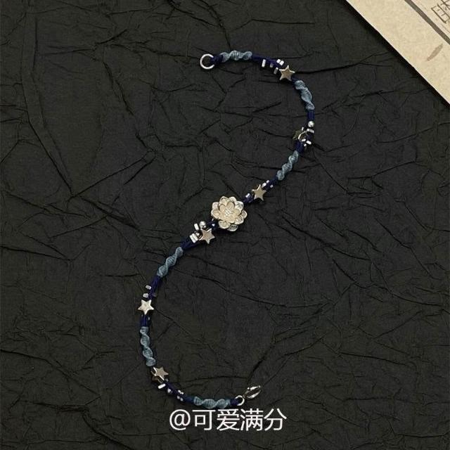 「星染藍蓮」新中式銀色蓮花藍色編織手鍊民族風小衆設計手繩女