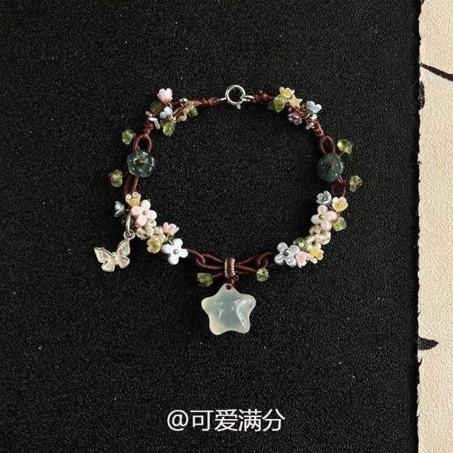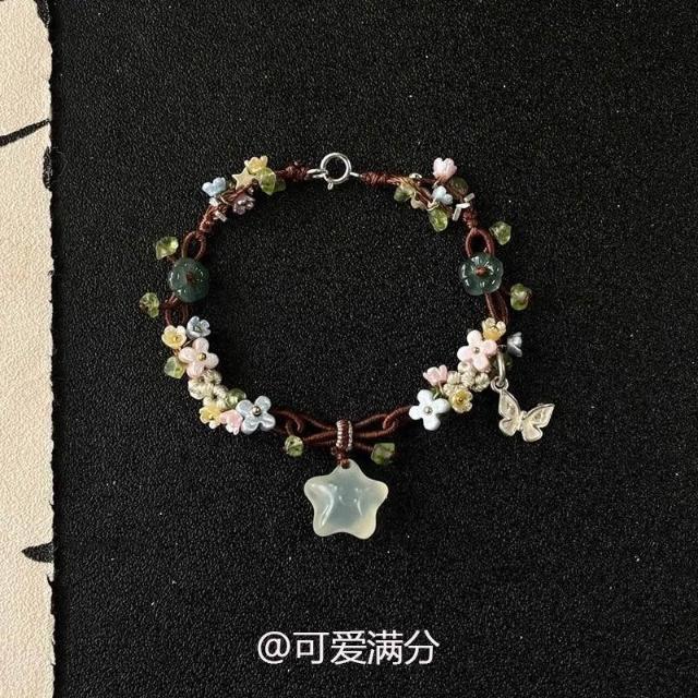 「如花在野」冰透星星小花蝴蝶編織手鍊彩色花朵手繩禮物