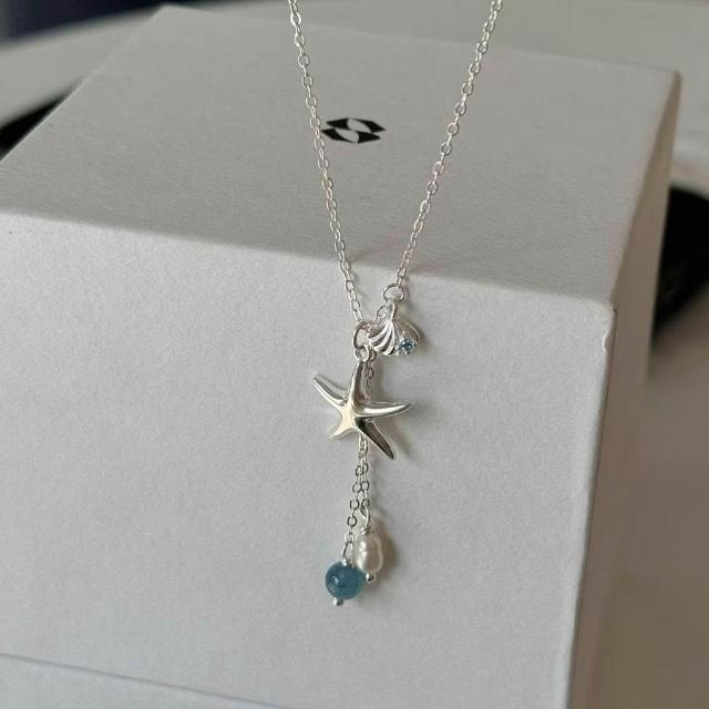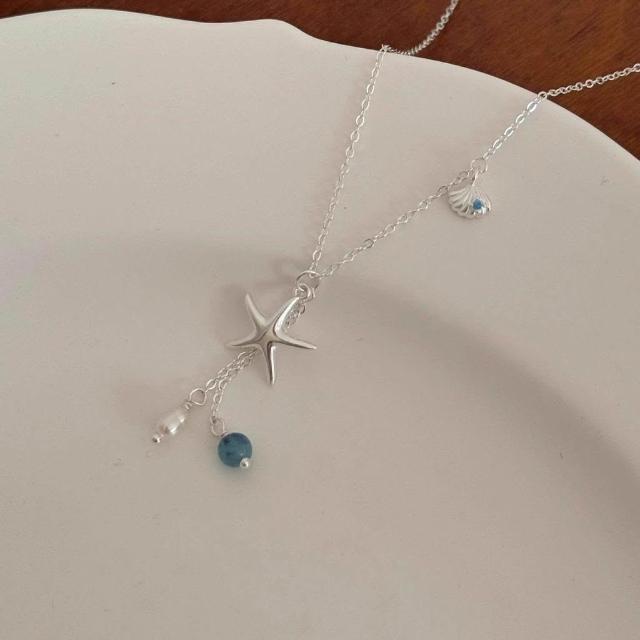 銀海星貝殼流蘇項鍊女清新簡約