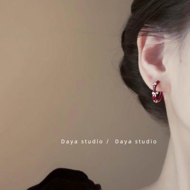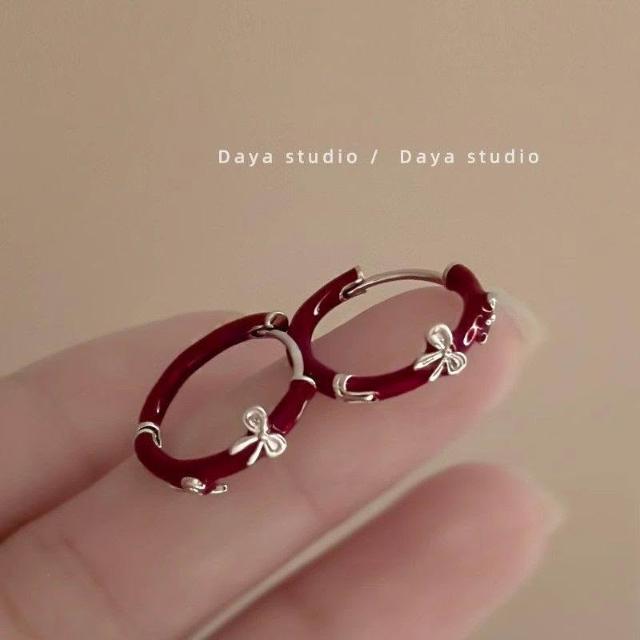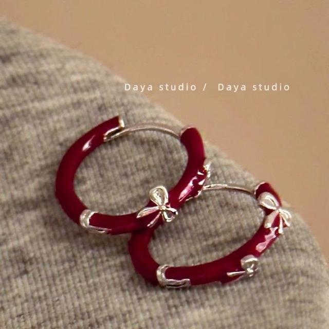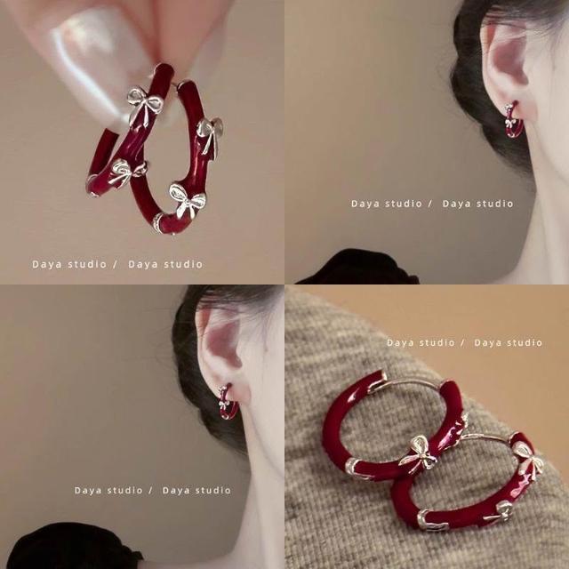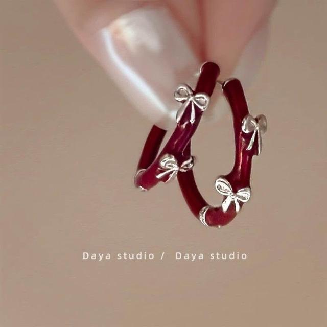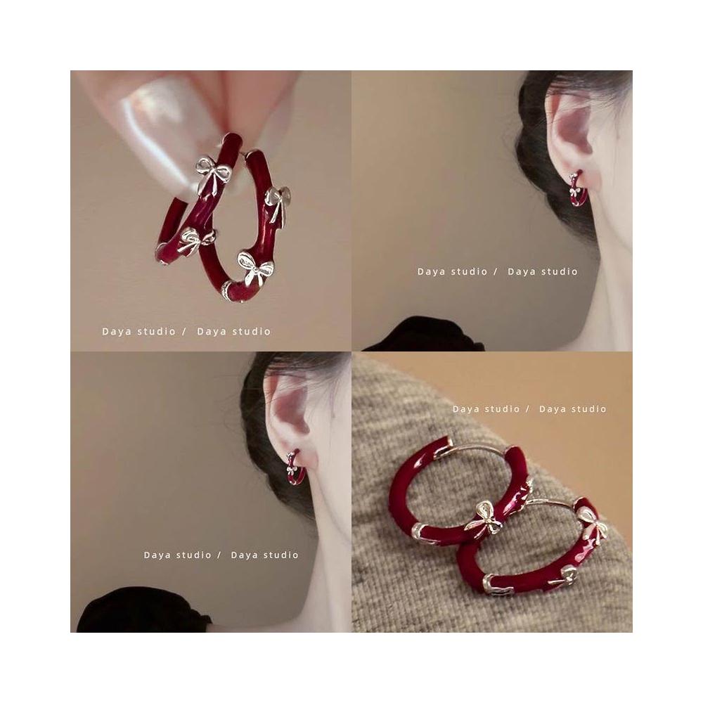 滴釉酒紅蝴蝶結耳環耳圈秋冬耳飾