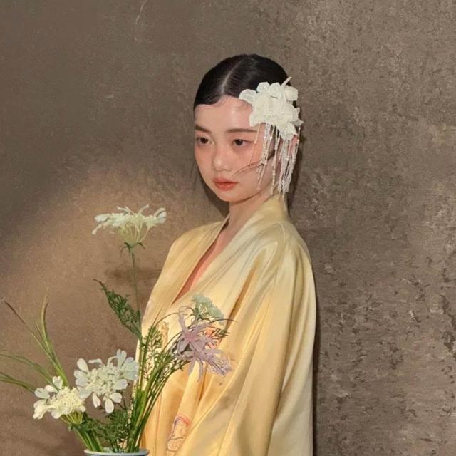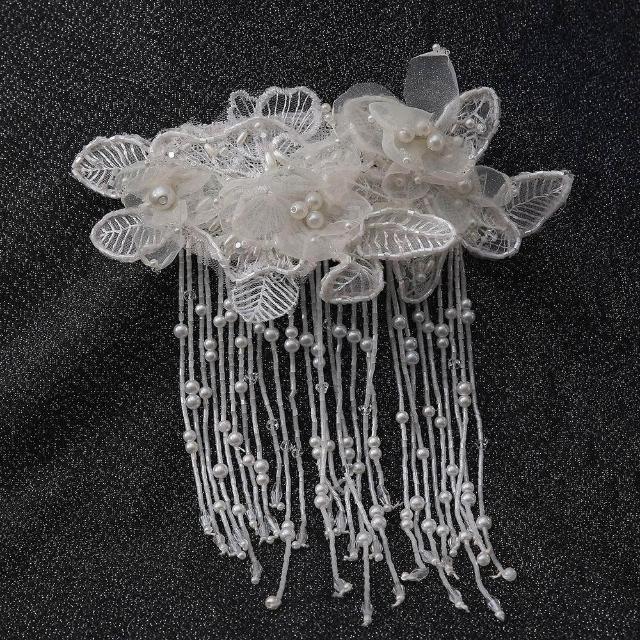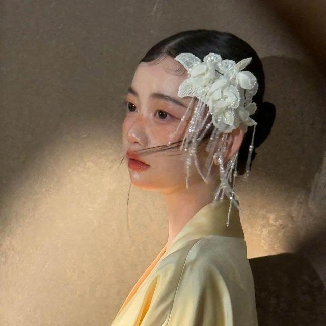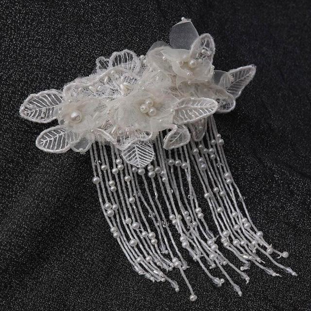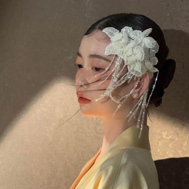 優雅花朵流蘇髮飾小衆手作串珠新娘配飾頭飾