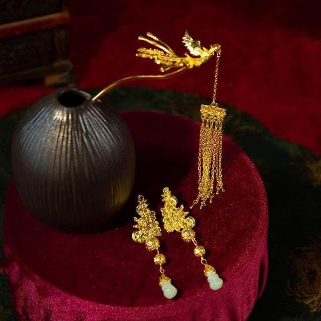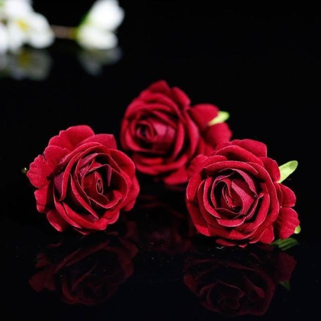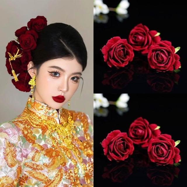 新娘紅玫瑰髮簪套裝紅色中式秀禾髮飾花朵盤髮結婚配飾品