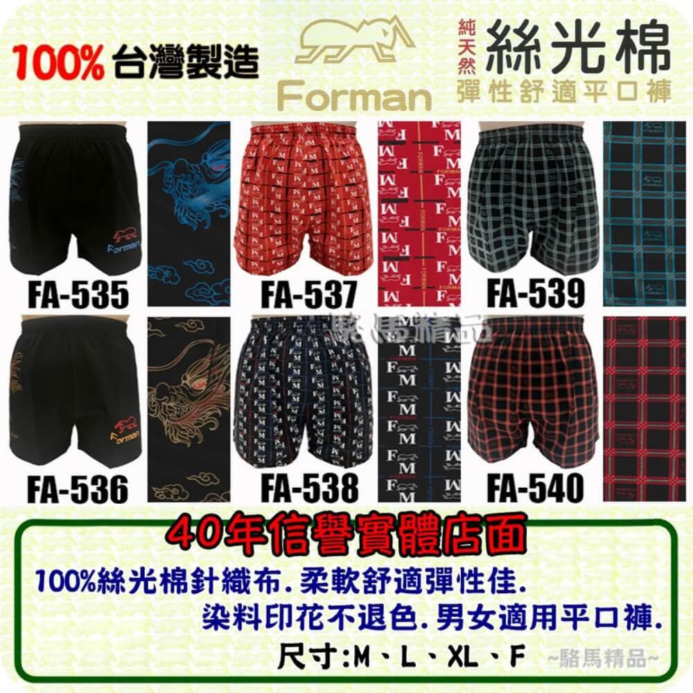 Forman 紅螞蟻平口褲 100%絲光棉FA系列 FA-535~540