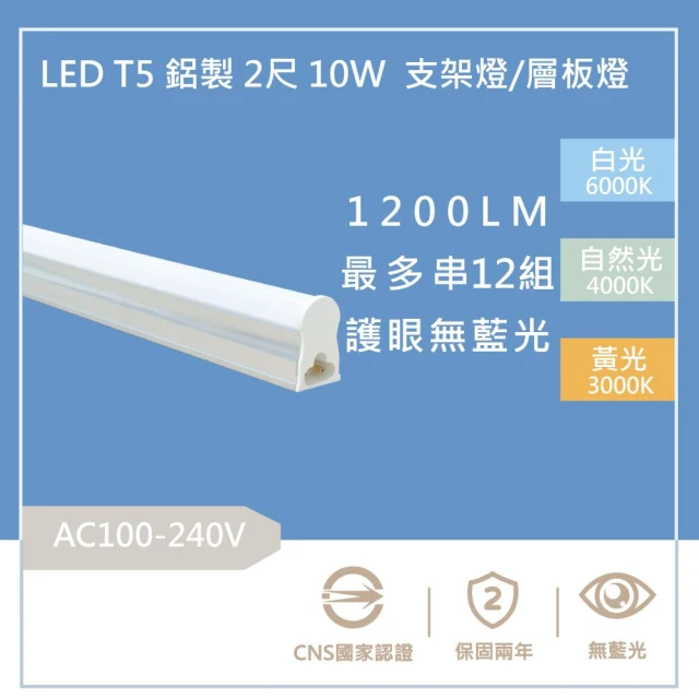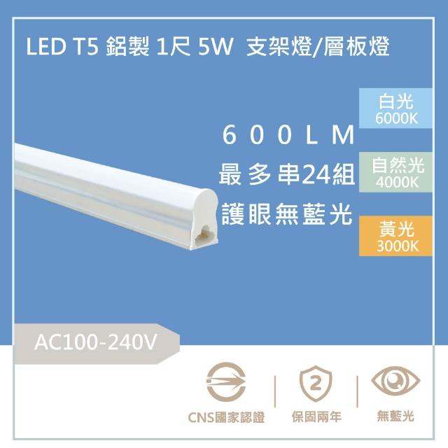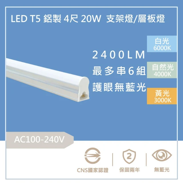 含稅 20W 三孔 LED T5 層板燈 2400流明 4尺 3尺 2尺 1尺 20w 保固2年 支架燈