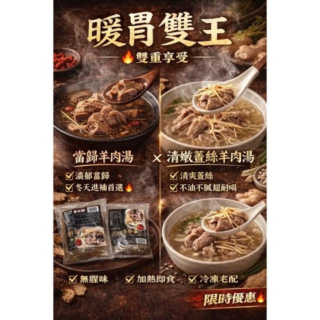 《當歸羊肉湯 &清燉薑絲羊肉湯》一組兩包 👉慢火熬煮,香氣一開直接撲鼻!