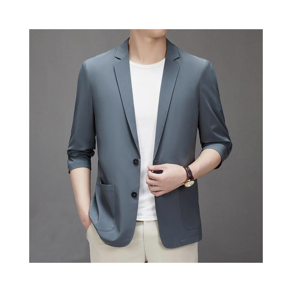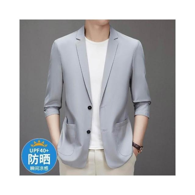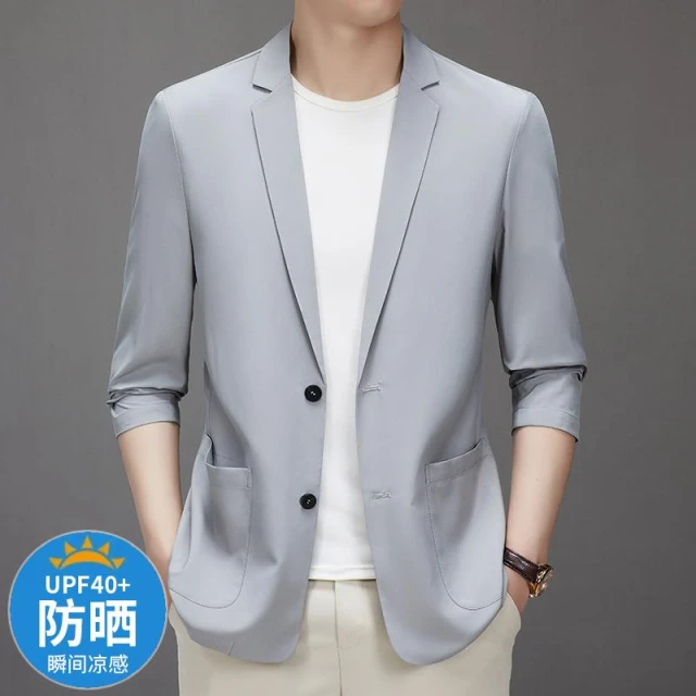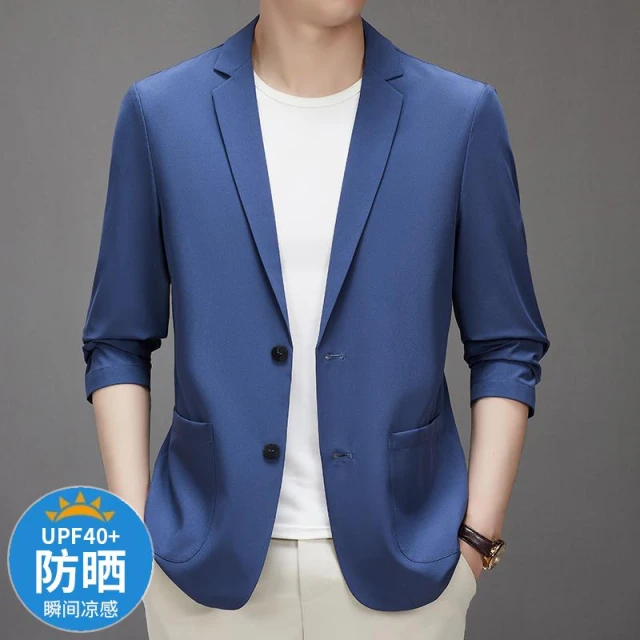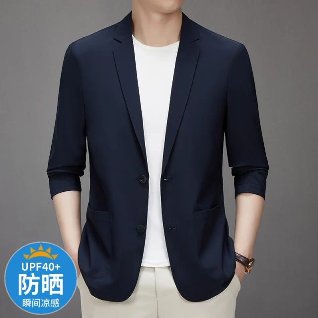 西裝外套男夏季薄款中年爸爸商務西裝寬鬆透氣冰絲西服青年彈力休閒小西裝純色簡約百搭單西免燙防皺職業裝涼感西裝防曬上衣外套