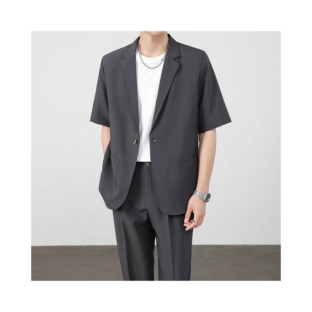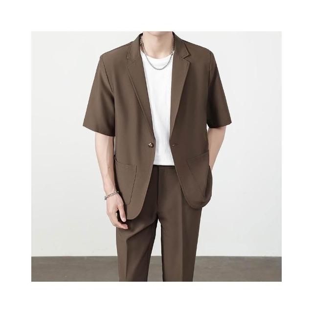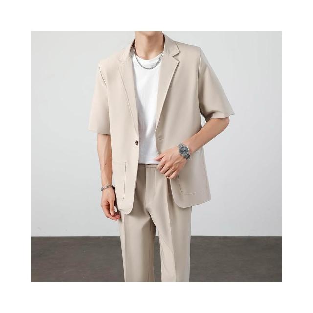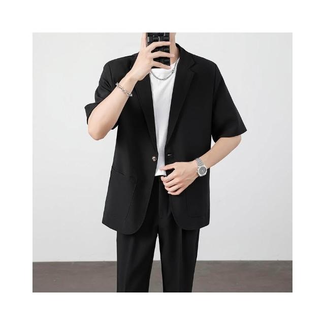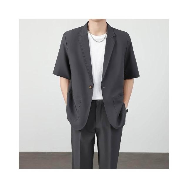 西裝外套男夏季薄款寬鬆透氣短袖休閒西服防皺免燙職業商務西裝夏天純色簡約百搭單西外套輕薄涼爽韓版上衣 短袖西裝 涼感外套