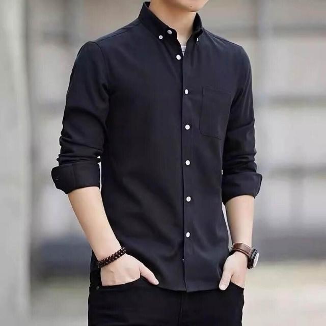 襯衫男士長袖春秋季牛津布純色商務休閒通勤輕薄舒適透氣涼感防皺免燙韓版洋氣潮流修身工作服高爾夫球衫中青年牛仔襯衫白色